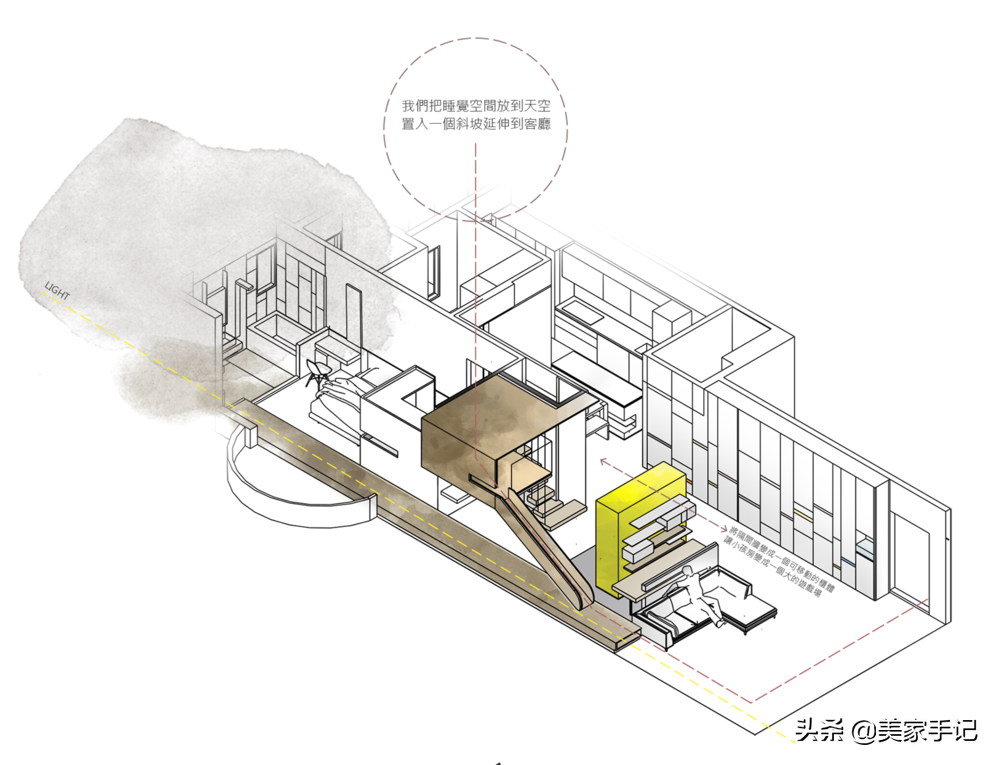 随着城市的发展,可以发现一个显而易见的事实,那就是可供孩子嬉戏的地方变得越来越少,如果是以前,在农村,左邻右舍大家相互熟络,可以玩泥巴、跳皮筋、丢沙包等等,但现在的商品房几乎像一个个塞进楼栋里面的集装箱,每天下班回到家可能连你对门的邻居是谁都不知道,为了让孩子不至于产生孤独感,很多家庭的装修开始愈发注重亲子间的互动和玩乐,比如本案业主位于台北的家就是如此,为了孩子,他巧用“悬空术”将卧室床直接悬空,如此不仅实用倍增,而且完工堪比多间房,真的太聪明了,就忍不住晒晒以期供有需要的朋友做个参考。